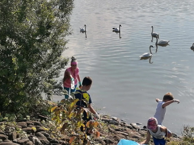 FOTO Lacul cu lebede ajuns groapă de gunoi. O mână de voluntari spală ruşinea românilor care aruncă gunoaie în natură