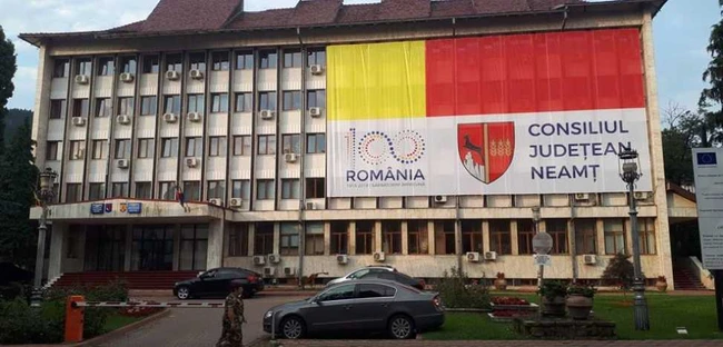 O fotografie care a stârnit comentarii acide şi multe semne de întrebare a devenit virală pe reţelele sociale în cursul zilei de miercuri, 1 august. Imaginea surprinde faţada Palatului Administrativ din Piatra Neamţ (clădire în care funcţionează Consiliul Judeţean Neamţ şi Prefectura Neamţ) acoperită cu un banner uriaş dedicat anului centenar al României.