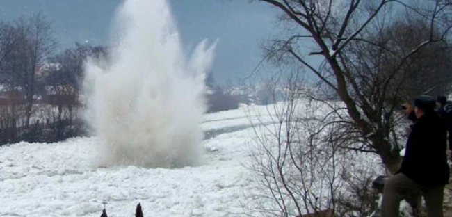 Neamț: A început dinamitarea zăporului de pe Bistrița (FOTO)