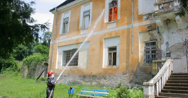 Incendiul a izbucnit astăzi, 3 iunie, în jurul orei 11.30. Pompierii se luptă cu flăcările în încercarea de a salva conacul Crupenschi, clădire datată 1780.