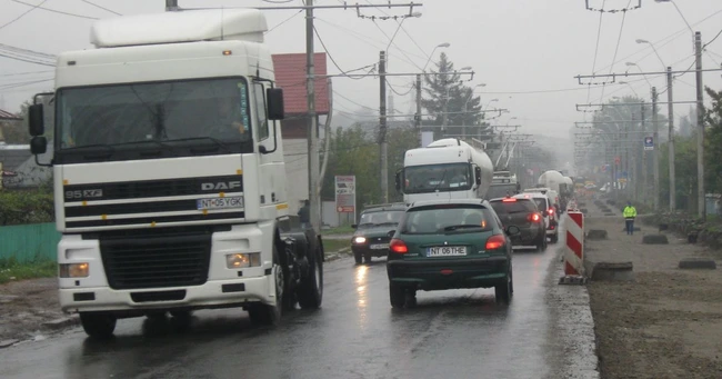 Cea mai mare problemă în trafic apare pe tronsonul afectat de lucrări cuprins între intrarea în oraş şi până la intersecţia străzii Petru Movilă cu şoseaua de centură. Din cauza săpăturilor necesare pentru reparaţiile la reţelele subterane, suprafaţa carosabilă s-a redus la jumătate. „Mai acordăm prioritate celor care vin din sens invers. De multe ori, se circulă maşină pe lângă maşină, că aproape ne atingem oglinzile retrovizoare“, spune Mircea Vasiliu, şofer.