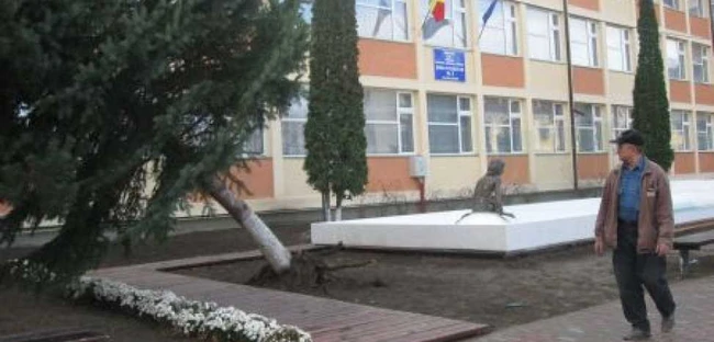 Brad smuls de vânt în faţa şcolii nr.3