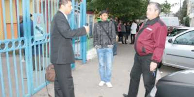 Elevul a fost însoţit astăzi până la poarta liceului, rămânând să îşi sune bodyguardul dacă va fi ameninţat de bătăuşul de peste drum.