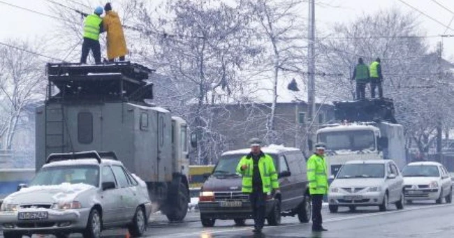 Navetiştii au îngheţat în această dimineaţă în staţii din cauza unui şofer de TIR care a rupt cablurile de la troleu.