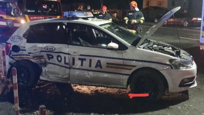 "În evenimentul rutier au fost implicate un autoturism în care se aflau trei persoane şi o autospecială din cadrul Serviciului Rutier Neamţ, în care se aflau doi poliţişti. Autospeciala avea semnalele acustice şi luminoase pornite. Cei doi poliţişti au fost preluaţi de echipajele medicale şi transportaţi la spital", a precizat purtătorul de cuvânt al IPJ Neamţ.