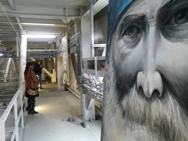 Până să ajungă în spaţiul expoziţional de la etajul al patrulea al clădirii, iubitorii de artă au strâmbat din nas la mirosul pestilenţial care emana din zona fermei.