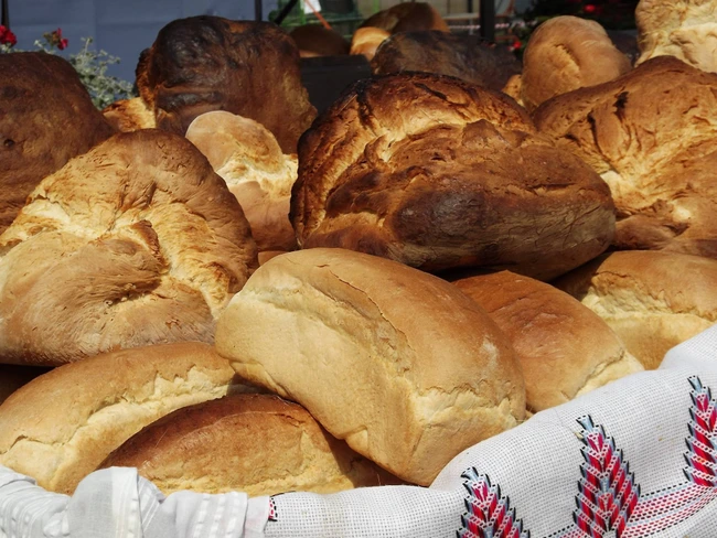 Aluatul pâinii se face din făina obţinută din grâul crescut de localnici. În mod tradiţional, la dospitul pâinii se folosea cumlăul în loc de drojdie. Cumlăul era un amestec format dintr-o cantitate mică de aluat, tărâţe de grâu şi hamei, iar acesta se înmuia în apă călduţă – de unde s-a dezvoltat şi expresia locală „apă caldă ca de pită“.