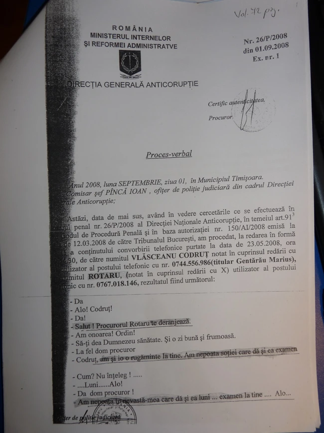 Prim-procurorul Ion Rotaru apare în trei dintre stenogramele care-l incriminează pe Vlăsceanu
