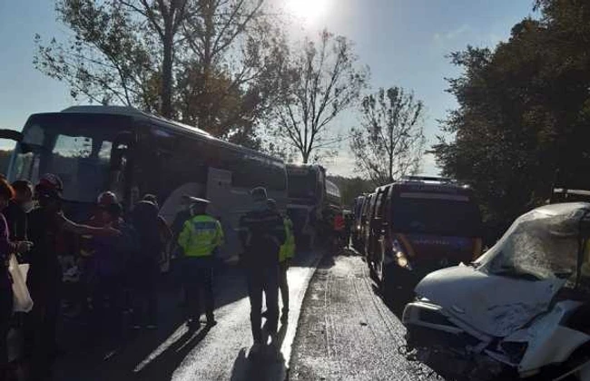 La locul accidentului au fost trimise două ambulanţe SMURD de prim ajutor, o autospecială de transport victime multiple, o autospecială de terapie intensivă mobilă, o autospecială de stingere cu apă şi spumă şi două echipaje din cadrul serviciului de ambulanţă judeţean.