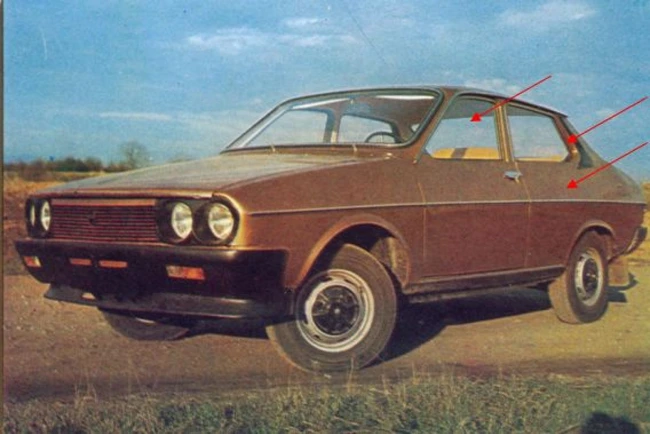 Revista Autoturism nr. 5 / 1981 a avut pe prima copertă modelul Dacia Sport, care fusese expus la Expoziţia Realizărilor Economiei Naţionale (EREN) din 1979 (foto sus). „Era prima apariţie în presa de atunci a unor fotografii cu modelul Sport la care se «îngheţase stilul». Culoarea era o veritabilă găselniţă ce a făcut istorie în epocă. Se chema «coniac». Imensa «plăcintă» cu rol de ornament (n.r. - un element negru, plasat după geamul lateral), nu era nici pe departe aşa ceva. Ascundea neregularităţile execuţiei «din ciocan» a unei piese de exterior“, explică Nicolae Cosmescu. Săgeţile (foto medalion)indică zonele exterioare executate manual. Ele vizau ancadramentul lunetei, a geamului custode, din spatele uşii, şi joncţiunea dintre faţa fostei uşi spate şi aripă spate, care la partea superioară suferea cele mai multe şi mai pretenţioase prelucrări. Iniţial, erau mascate de ornamente.