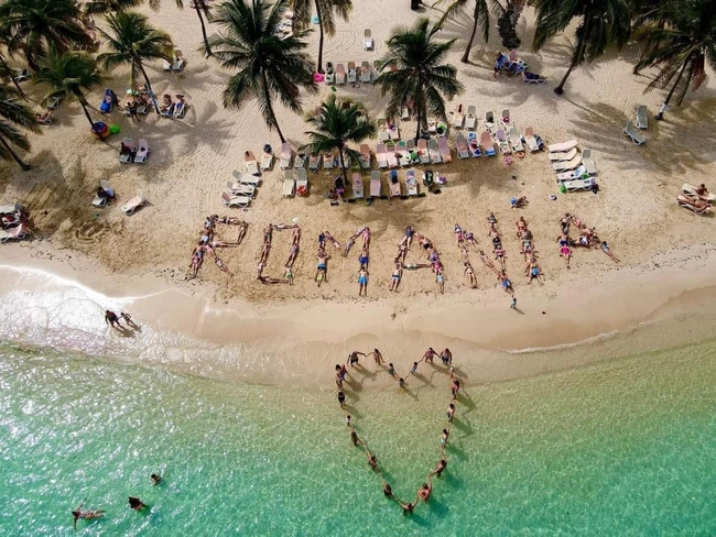 Declaraţie de dragoste pentru România. Au scris cu trupurile lor numele ţării natale pe o plajă din Jamaica