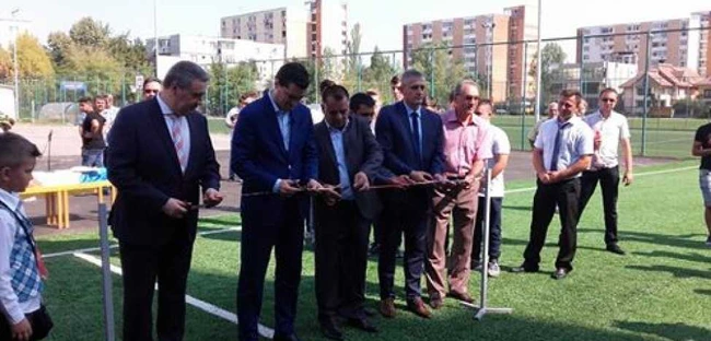 0Preşedintele FRF, Răzvan Burleanu, împreună cu reprezentanţii autorităţilor judeţene şi locale, a tăiat astăzi panglica inaugurală a noului teren de fotbal cu gazon sintetic al Şcolii Gimnaziale Mihai Eminescu, primul amenajat cu sprijinul FRF în intituţiile de învăţământ din ţară, în cadrul proiectului <<Împreună suntem fotbal>>.