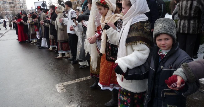 La minus şapte grade Celsius, piteştenii s-au prins în Hora Unirii