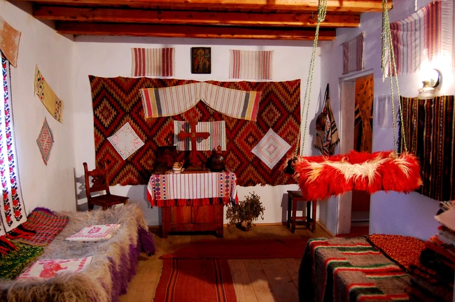 Cealaltă este „odaia de dormit” sau „iatacul”, cameră pardosită cu scândură, cu icoană în perete, crucea de jurământ şi oala cu busuioc pe masă; aici vizitatorul descoperă patul tare de scândură pe care este așezată lada de zestre, acoperite cu frumoase ţesături colorate de lână. Atârnată de tavan găsim copăița în care mamele îsi legănau pruncii.