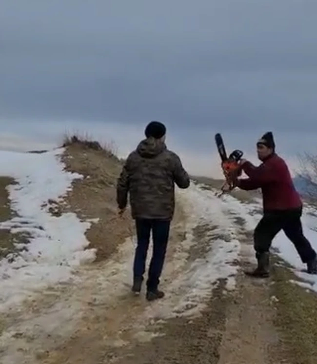 Întreaga secvență a fost descrisă de procurori în rechizitoriu: „Inculpatul a ridicat toporul deasupra capului, ducându-se în mod ameninţător către ei”. De asemenea, un alt inculpat: „ținea drujba pornită şi ameninţa persoanele de faţă că o să le taie”, arată procurorii.
