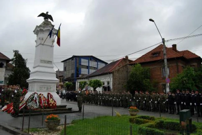 Monumentul Eroilor de pe strada Crinului din Piteşti a fost ridicat în 1905, fiind dedicat eroilor din Regimentul 4 Dorobanţi Argeş căzuţi la datorie la sud de Dunăre în Războiul de Independenţă din 1877-1878. După depunerile de coroane de aici, manifestările au continuat cu o paradă militară în zona centrală a municipiului. Sute de militari de la Garnizoana Piteşti, precum şi zeci de poliţişti şi jandarmi au defilat în faţa autorităţilor. Au fost prezentate de asemenea mai multe vehicule militare şi de intervenţie.