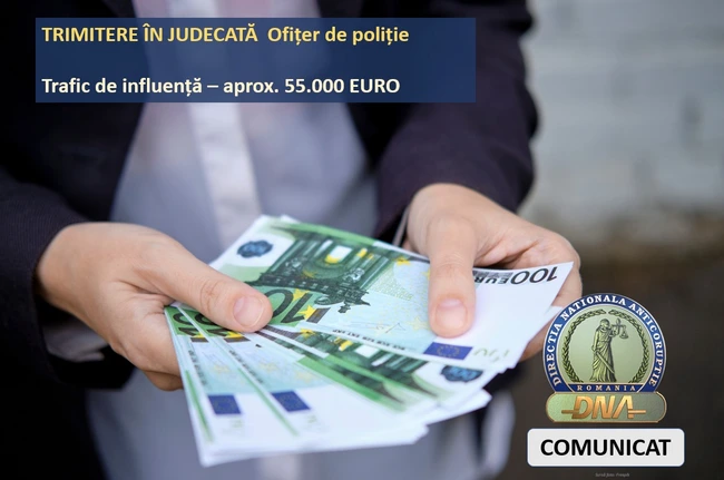 Poliţist trimis în judecată după ce a cerut 100.000 de euro ca să intervină pe lângă un magistrat, într-un dosar penal