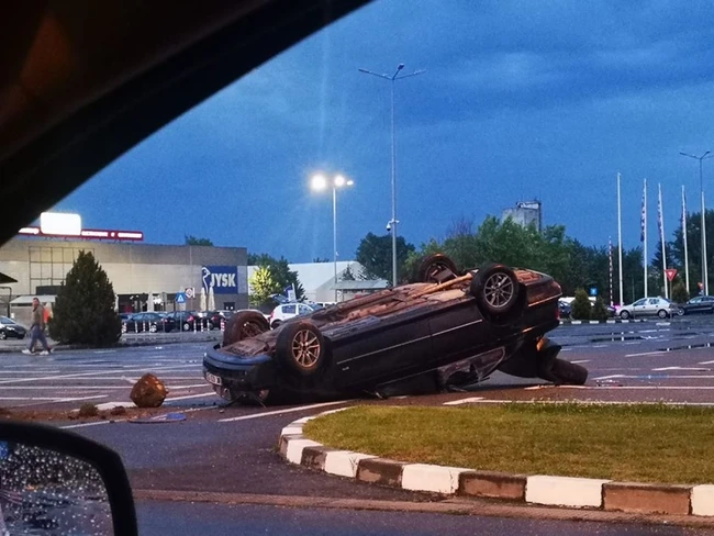 Accidentul a avut loc în jurul orei 21,20, chiar în parcarea complexului comercial. BMW-ul condus de un tânăr a ajuns cu roţile în sus. Din fericire, şoferul s-a ales doar cu răni superficiale.