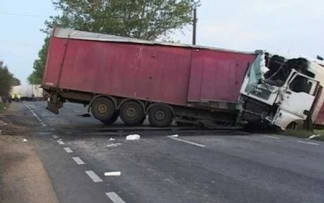 Două TIR-uri s-au ciocnit frontal în impact, iar o persoană a fost rănită. Traficul este blocat total în zonă.