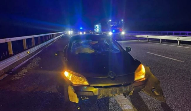 0O bovină a ajuns pe autostrada A3, în comuna Gherghița din județul Prahova, unde a fost lovită de două mașini. Unul dintre vehicule s-a răsturnat, relatează Agerpres.