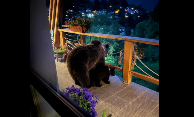 Administratorul public din Sinaia s-a trezit cu o ursoaică însoţită de pui, pe terasa casei: „Îmi sunt dragi, dar nu aşa“