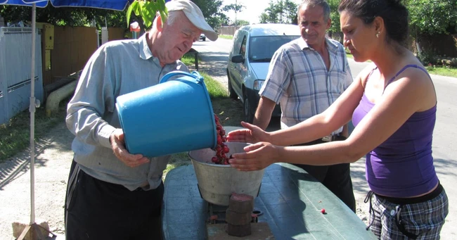 Oamenii se fălesc cu faptul că sunt „deţinătorii" unei livezi cu cireşi. Este afacerea vieţii lor. Zilnic, scot la vânzare peste 30 de găleţi şi coşuri pline cu frute. „Suntem nişte pensionari fericiţi. Avem 54 de ani de căsnicie şi acum, la bătrâneţe, trăim din comercializarea fructelor produse în grădina din spatele casei. Toate sunt ecologice, sănătoase şi arătoase. Toţi banii îi investim în casă şi ne ajutăm copiii şi pe cele patru nepoate. Este recoltă bogată, anul acesta", se mândreşte Nae Marin, proprietarul a nu mai puţin de 20 de pomi roditori.