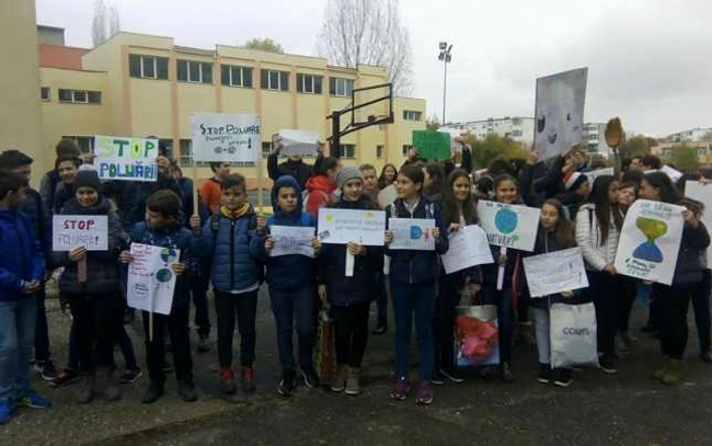 Copiii au venit, vineri, cu o jumătate de oră mai devreme la cursuri şi asta pentru a avea timpul necesar să se organizeze în curtea şcolii. Fiecare a avut câte o pancartă în mână pe care era trecut cu litere de-o şchioapă un mesaj adresat autorităţilor, dar şi marilor poluatori.