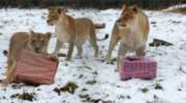 0Animelele Grădinii Zoologică de la Bucov s-au bucurat de cadourile pregătite de angajaţii instituţiei cu ocazia celei de-a treia ediţii a „Crăciunului Animalelor". Leii s-au jucat cu cadourile primite