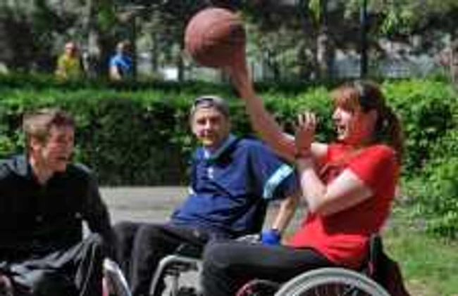 Cu fotoliile rulante pregătite pentru "alergare", cu o țintă sigură - coșul de trei puncte, dar mai ales cu multă dorință de a se bucura de un pic de mișcare în aer liber, cei zece componenți ai echipelor de baschet au oferit trecătorilor o imagine aparte. Le-au arătat că "sportul oamenilor înalți" poate fi practicat și dintr-un scaun rulant.