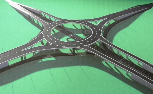 Legătura de acces între cele două drumuri se va face prin bretele de acces denivelate şi un pod cu o lungime de aproximativ un kilometru. Inelul giratoriului va avea aproximativ 280 de metri.