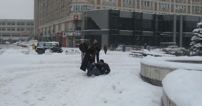 Dacă oamenii nu îşi rup o mână sau vreun picior, episoadele sunt amuzante inclusiv pentru protagonişti care, după căzătură, traversează cu mai multă atenţie zona alunecoasă din faţa Palatului Administrativ.