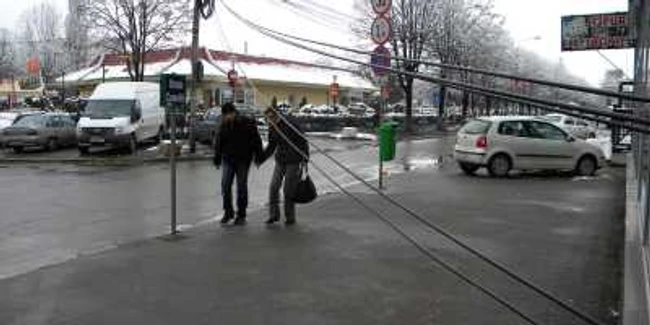 Ninsoarea de azi-noapte din Ploieşti a afectat cablurile de curent electric din zona intersecţiei Nord cu strada Cameliei.
