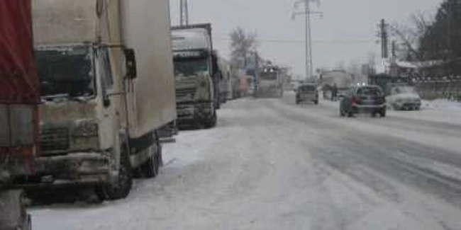 Autorităţile judeţene susţin că nu se poate interveni din cauza viscolului. Aşa încât, cîteva zeci de TIR-uri, camioane şi autoturisme sunt blocate în zona Albeşti Paleologul.
