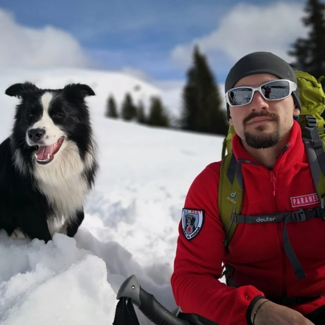 Singurul câine de intervenţie al Salvamont Prahova, aruncat în jnepeni de o turistă speriată: „Astăzi, Carp a fost lovit de un pantof roz”