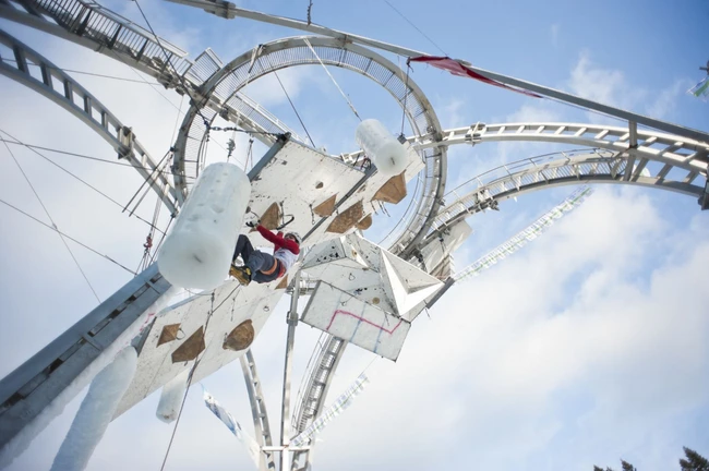 Concurenţii trebuie să escaladeze structuri artificiale înalte de 25 de metri, un fel de panouri imense, acoperite parţial cu gheaţă, menţinută cu un sistem special de refrigerare.