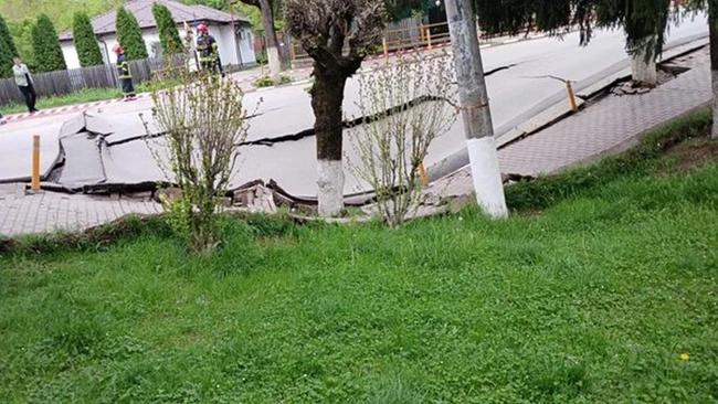 Între timp, au apărut imagini care surprind momentul în care strada din Slănic Prahova se surpă. Este alertă maximă în zonă, mai ales că peste noapte groapa a mai avansat. Specialiștii fac în permanență măsurători.