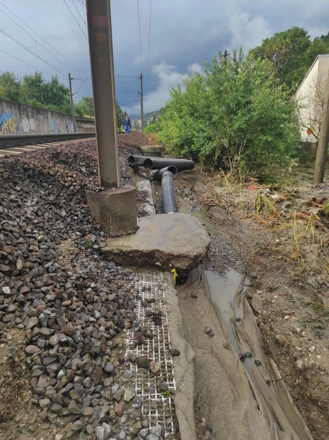 Terasamentul CF linia II este afectat. Nu sunt trenuri blocate sau redirecţionate. Se aşteaptă vagoane cu piatra pentru a reabilita zona.