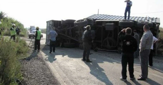 Un autotren implicat într-un accident rutier a rămas blocat pe partea carosabilă, îngreunând desfăşurarea traficului pe DN1.
