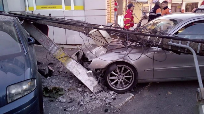Un bărbat de 35 de ani a murit, sâmbătă, într-un accident. Un stâlp din beton a căzut peste maşina în care se afla victima
