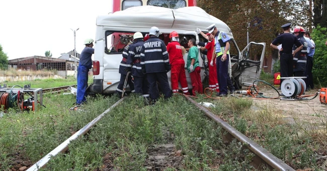 Un șofer de microbuz a murit, în Prahova, după ce a fost lovit de tren