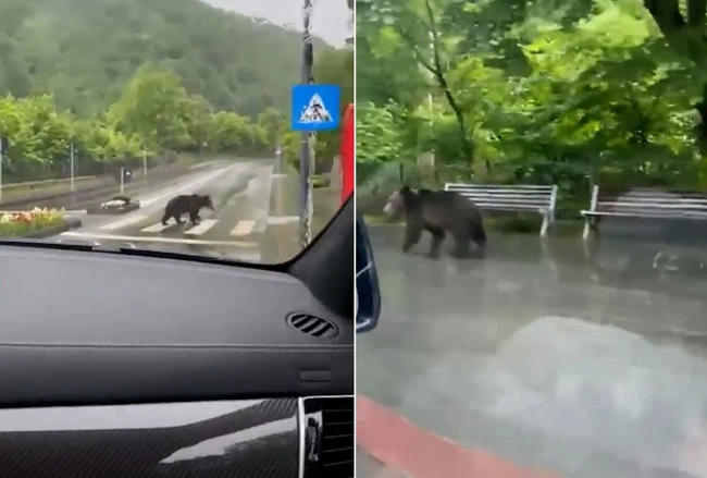 Luni, un turist aflat la volanul unei maşini a înregistrat imaginile momentului care au devenit virale pe internet. Un urs adult traversa strada chiar pe trecerea de pietoni aflată în spatele Cazinoului din Sinaia, un drum extrem de circulat de către turiştii care fac plimbări pe jos către cota 1000 sau mai sus.