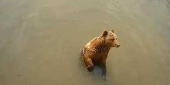 Vremea caldă a determinat anjagații ZOO să umple cu apă șanțurile din țarcuri, iar urșii au profitat de moment pentru a face prima baie din acest an.