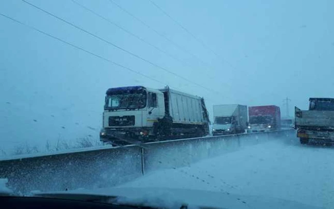 UPDATE ORA 15.00: Începând cu ora 14. 45 S-a instituit restricţie pentru accesul autovehiculelor cumasa mai mare de 7,5 tone pe DN1D, între localităţile Albeşti Paleologu şi Ciorani. În această zonă, mai multe maşini au rămas blocate în troienele de zăpadă.