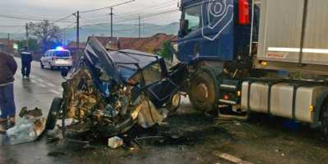 0Autoturism strivit sub un tir, la iesirea dintr-o benzinarie (foto arhiva)