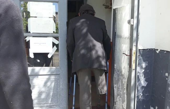 FOTO Bărbatul fără un picior care a preferat să meargă la vot în cârje decât să ceară urna mobilă: „Umiliţi în ţară, umiliţi şi afară“