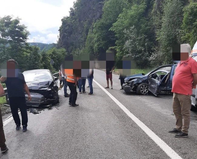 FOTO Carambol pe Valea Oltului cu trei autoturisme şi un TIR implicate, trafic blocat total minute bune. Şoferiţa care a cauzat accidentul, în spital