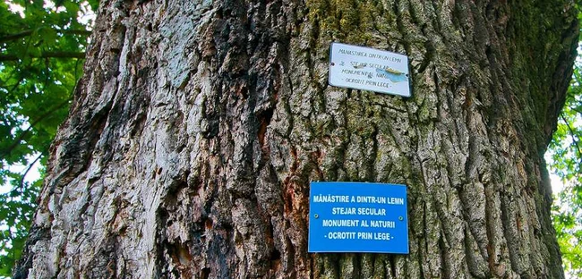 Printre stejarii seculari celebri din judeţul Vâlcea se numără şi cei din curtea Mănăstirii Dintr-un Lemn. Legenda spune că dintr-un astfel de stejar secular a fost construită Biserica Dintr-un Lemn şi că în scorbura unui alt stejar secular a fost găsită imensa icoană a mănăstirii, pictată pe ambele părţi.