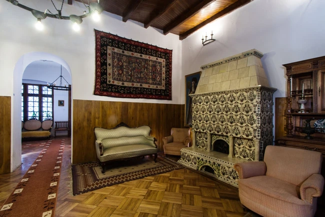 Farfuriile emailate de ceramică expuse pe masa mare a conacului, înconjurată de policioare, te poartă în alte vremuri, pentru că armonia culorilor luminează întregul spaţiu. Alte comori sunt adăpostite într-un dulap sculptat din lemn, unde fineţea execuţiei te îndeamnă să-ţi imaginezi viaţa de zi cu zi la conac.