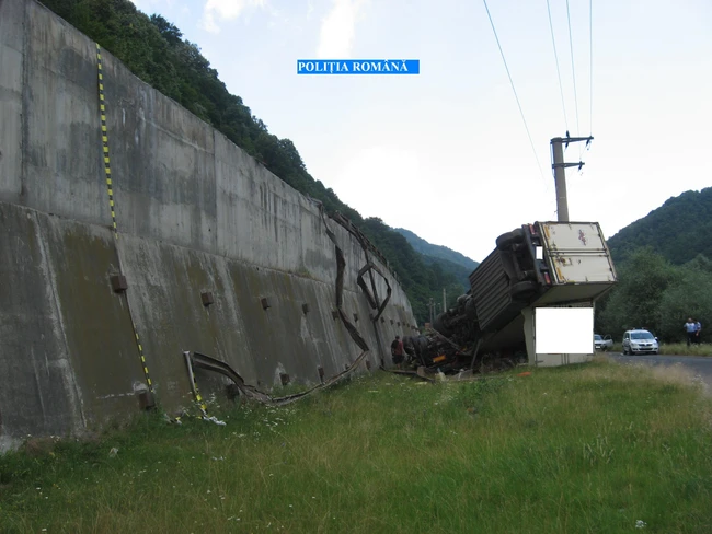 Un tir încărcat cu alimente s-a făcut „arşice" după ce a căzut în această dimineaţă de pe un viaduct, în localitatea Câineni-Vâlcea. Circulaţia pe Valeea Oltului nu a fost întreruptă, tirul „plonjând" de la o înălţime de 12 metri, pe vechiul drum. Ca prin minune şoferul, rămas încarcerat, după ce a fost scos de către pompierii de la descarcerare, s-a constatat că nu avea decât câteva escoriaţii, o contuzie toracică şi una la umăr. „Circulaţia pe DN 7 nu a fost îngreunată din cauza acestui incident. Conducătorului auto, Daniel C. (38 ani), din comuna Baci-Cluj, i-au fost recoltate probe de sânge", a spus sinsp. Alina Teodorescu, purtătorul de cuvânt al Poliţiei Vâlcea.