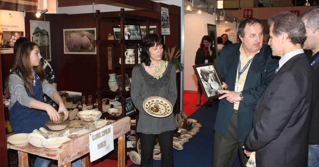 0La Târgul de Turism al României de la Romexpo, micii olarii horezeni au încântat asistenţa cu îndemânarea cu care au modelat lutul.
